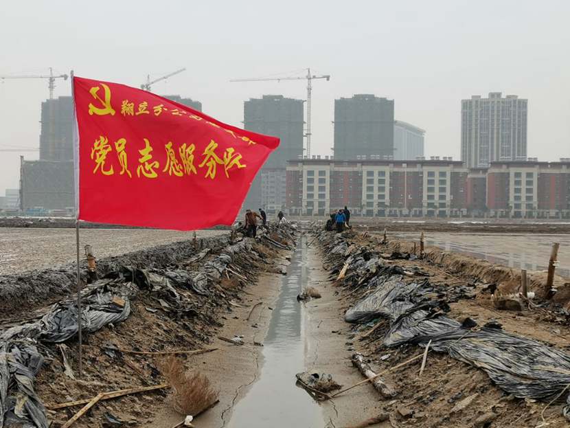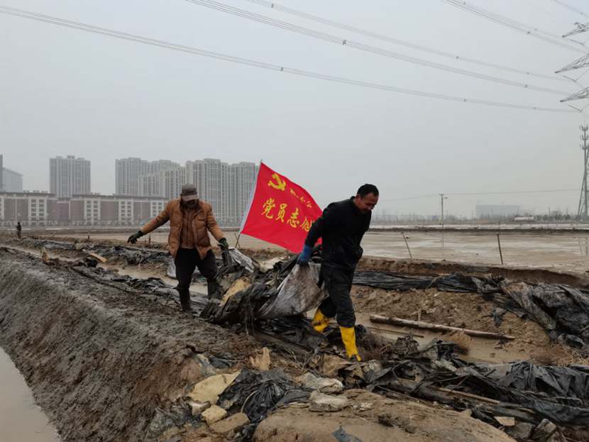 勞動現(xiàn)場,鮮紅的“黨員突擊隊”旗幟迎風(fēng)飄揚,凜冽的寒風(fēng)夾雜著細雨,絲毫不減大家的勞動熱情,個個汗流浹背、滿身泥漿,不怕臟不怕累,經(jīng)過3個小時的突擊勞動,共清理1200米、16車池埝垃圾。