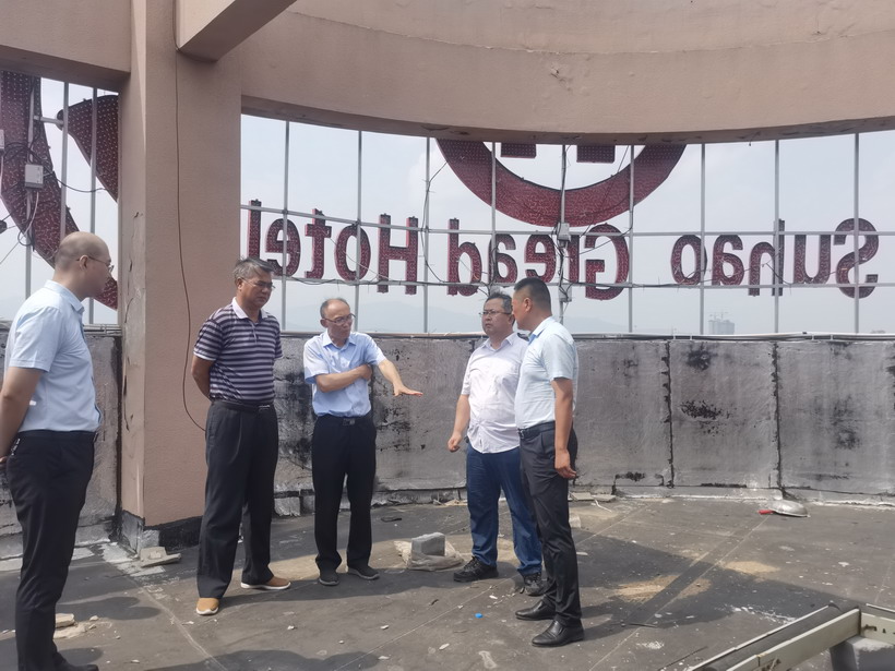 為進(jìn)一步吸取蘇州酒店塌樓事故教訓(xùn),近日,臺北投資公司全面加強(qiáng)建筑施工領(lǐng)域安全生產(chǎn)檢查。7月14日集團(tuán)公司安監(jiān)部胥廣會等領(lǐng)導(dǎo)一行檢查了公司租賃客戶蘇豪大酒店裝修工程。