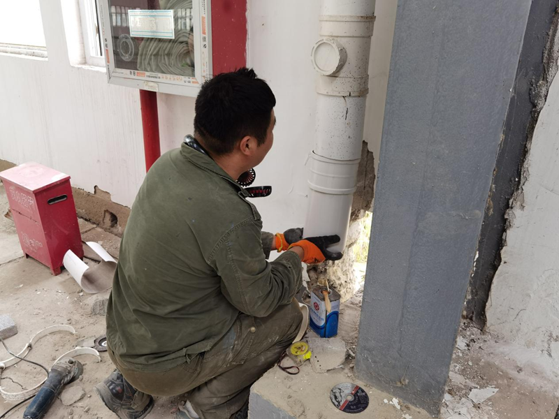 為防止雨水進入廠房,破壞廠房基礎(chǔ)結(jié)構(gòu),翔立分公司搶時間,公司職工立即行動起來對海州灣公司三號廠房排水管道急需改造。在排水管道的位置打破墻壁,鉆好孔洞,然后他們將原有不合理的管道進行切割,再用膠水黏合好角度向外的接頭,確保雨水能夠全部排到廠房外,保障了投資公司的財產(chǎn)安全不受到天然災(zāi)害的損失。