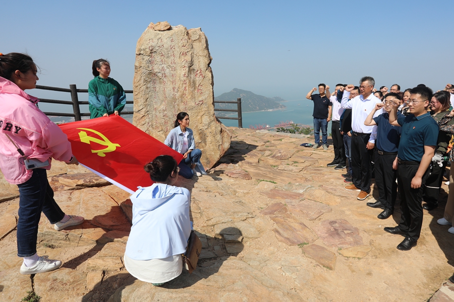 大家在桅尖口石碑前,仔細(xì)聆聽了工作人員講述了當(dāng)年連云港港保衛(wèi)戰(zhàn)的“一寸山河 一寸血”。隨后在曾經(jīng)無數(shù)抗戰(zhàn)英雄拋頭顱灑熱血的地方,全體黨員重溫了入黨誓詞,向黨和英烈們許下的“謹(jǐn)記昔日舉國傷痛,不忘犧牲砥礪前行”的誓言。