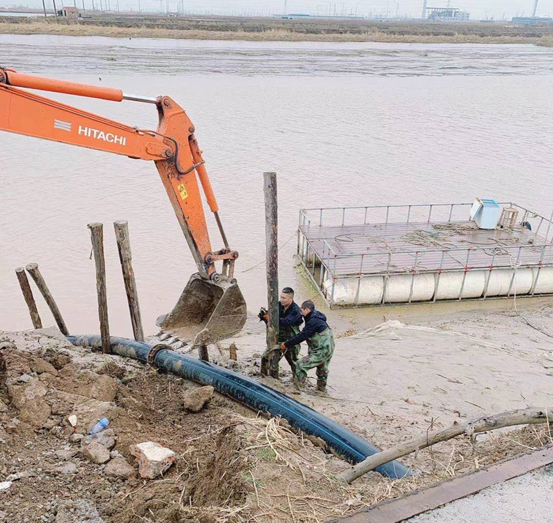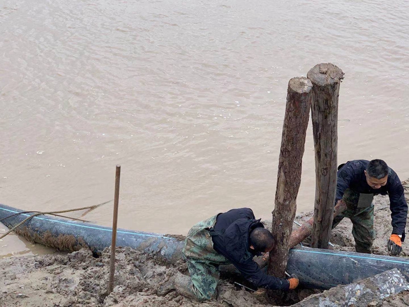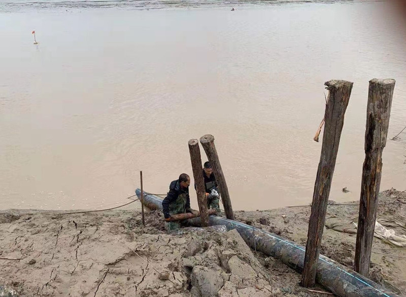 ?一想到昨天管道巡查到這里的情形,現(xiàn)在還讓人“心有余悸”!因管道地處善后河彎道處,常年的泄洪沖刮將河邊覆蓋管道的泥土沖刷卷走,使得岸邊泥土下原本穿越的PE315管道已經(jīng)暴露出來(lái),退潮時(shí)的旋流不斷地沖撞著漂浮起來(lái)的鈣液管道,劇烈抖動(dòng)著的管道不時(shí)發(fā)出“噗噗的低吼”隨時(shí)可能折斷。埒子口潮河段是鈣液東輸灌西管道最長(zhǎng)的一節(jié)過(guò)河穿越,全長(zhǎng)約300米。穿越管道如果折斷在河底后果將不可想象、經(jīng)濟(jì)損失也是不可估量的,這一幕讓在場(chǎng)所有人員都為之捏了一把汗!