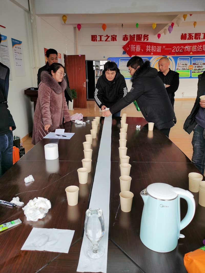 臨達(dá)公司工會組織開展了“迎新春、共和諧”職工聯(lián)誼會。本次活動以“益智娛樂、休閑健康”為主旨,設(shè)置群龍奪水、你比我猜、卷紙大作戰(zhàn)、繞口令等四個游戲項目?,F(xiàn)場用氣球、橫幅等布置,洋溢著濃濃的節(jié)日氛圍。
