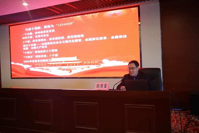 下半場,張校長從一個(gè)主題,推動高質(zhì)量發(fā)展;兩件大事,發(fā)展與安全;三個(gè)新,新發(fā)展理念、新發(fā)展階段、新發(fā)展格局;新四個(gè)全面,全面建設(shè)社會主義現(xiàn)代化國家、全面深化改革、全面依法治國、全面從嚴(yán)治黨;“十四五”規(guī)劃堅(jiān)持五個(gè)原則;“十四五”規(guī)劃目標(biāo),六個(gè)新;2035年遠(yuǎn)景目標(biāo)建議九項(xiàng)措施等九個(gè)方面解讀了全會精神的“新征程 新理念 新格局 新愿景”。