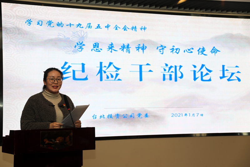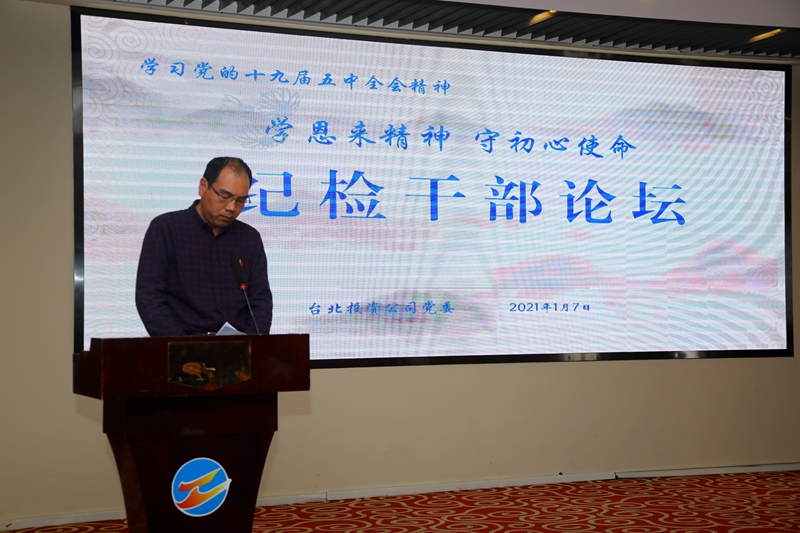 “感受偉人風范,踐行初心使命……”從臺北投資公司十樓會議室里傳來鏗鏘有力的演講聲。為深入推進“學恩來精神、守初心使命”專題教育活動,鍛造忠誠干凈擔當的紀檢干部隊伍,1月7日下午,公司舉辦紀檢干部專題大講堂。公司領導班子成員,各單位、部門中層副職以上管理人員參加了活動。