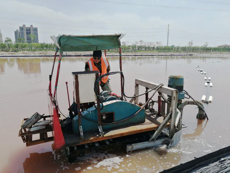 在大浦工區(qū),工長劉天義說:“今年秋扒的任務(wù)重,加之最近幾天陰雨,耽誤了工期,國慶期間我們?nèi)糠艞壭菁?,今天早上收完塑苫布,只要天氣允許,我們馬上就轉(zhuǎn)入正常扒鹽工作.....”