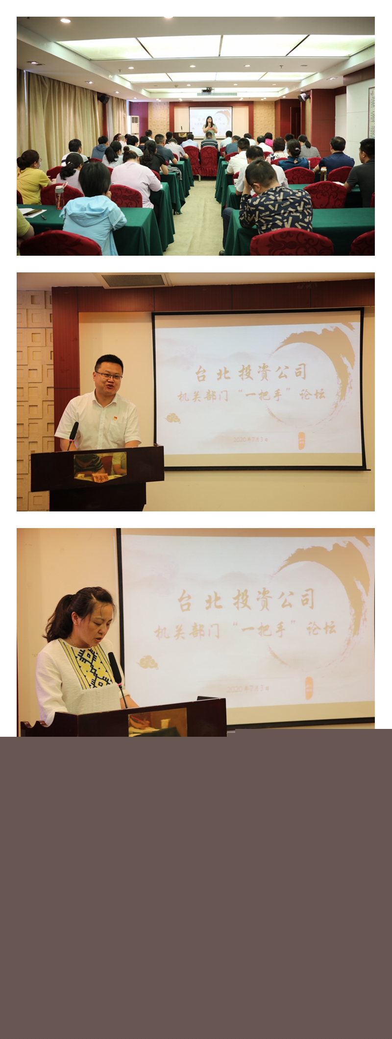 7月3日下午,投資公司在九樓會(huì)議室舉辦臺(tái)北大講壇——部門“一把手”專場(chǎng),來(lái)自機(jī)關(guān)部門的八位同志走上講臺(tái),談心得,談想法,談思路,談措施。公司領(lǐng)導(dǎo)、各單位黨政負(fù)責(zé)人、機(jī)關(guān)部門部分人員參加了講壇。本次講壇由各基層單位主要負(fù)責(zé)人作為評(píng)委。