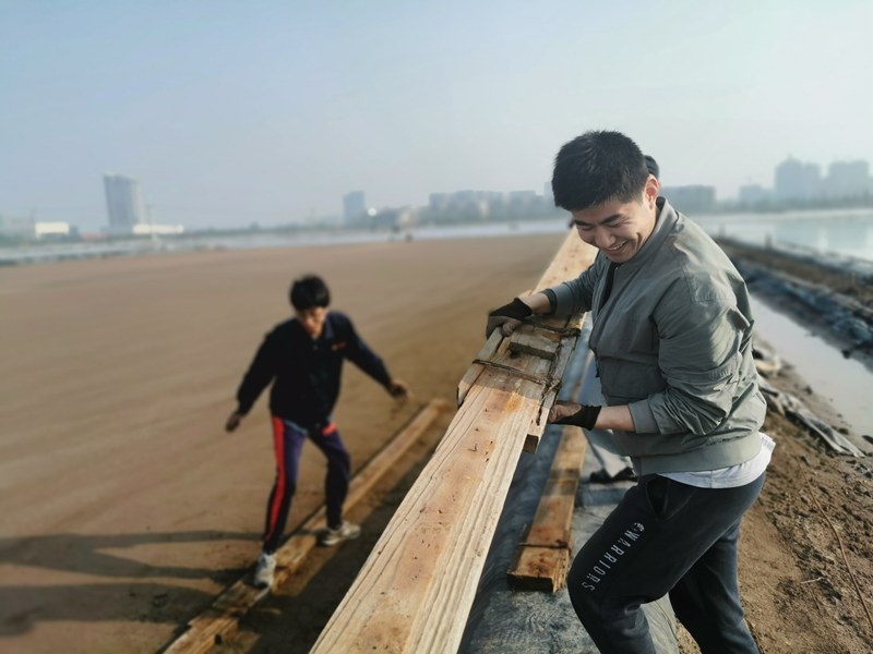 烈日酷暑下,大家用汗水編織出一幅激情四射的勞動圖。38度的高溫,3個(gè)小時(shí),1500余米的浮板安裝被順利拿下。