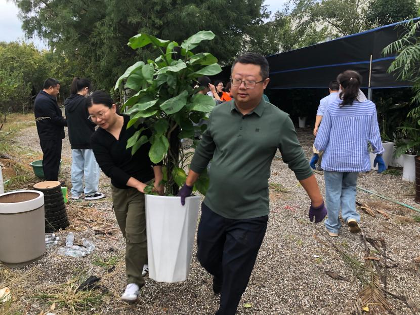 此次勞動的內(nèi)容是對益豐園林分公司盆景園內(nèi)環(huán)境衛(wèi)生進行整治,同時,將盆景園河西苗圃基地的100多盆綠植盆栽搬進花房,確保不耐寒綠植盆栽順利越冬。大家服從組織安排,戴上手套和做好防護措施后,三兩人組成一組,分工協(xié)作、配合默契,以飽滿的熱情投入到勞動中去。大家擼起袖子,干勁十足,看到所有綠植都搬到了“新家”,每一位員工臉上都洋溢著勞動的喜悅。
