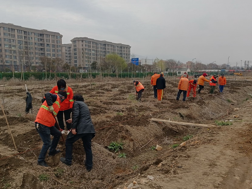春風(fēng)拂面,大地添綠。當(dāng)下正是植樹造林的好時節(jié),益豐園林公司搶抓春季黃金期,正在80畝苗圃基地進(jìn)行果苗移植,時間緊、任務(wù)重、人手少,綠化分公司黨支部組織安排20余名黨員及生產(chǎn)骨干火速“增援”,高質(zhì)高效完成此項(xiàng)工作。