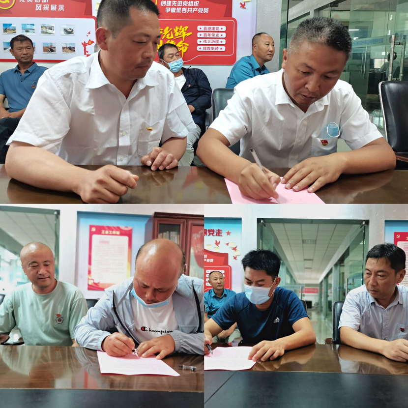 ? ? 會后,在書記工作室舉行了黨員“1+1”結(jié)對幫扶活動(dòng)儀式。“名將”劉天義、“闖將”伏廣銀、“虎將”霍正鋼分別與一線鹽工朱文健、孫希學(xué)以及安全員紀(jì)鵬簽訂結(jié)對幫扶協(xié)議,霍正鋼作為幫扶者代表作黨員“1+1”共同進(jìn)步宣言,他表示將通過不定期的交流,發(fā)現(xiàn)被幫扶員工思想和工作中存在的問題和不足,充分發(fā)揮優(yōu)秀黨員自身的模范帶頭作用 ,進(jìn)一步激發(fā)被幫扶員工的工作熱情,真正提高工作質(zhì)量和生產(chǎn)技能,全面促進(jìn)公司各項(xiàng)工作更好、更快的發(fā)展。被幫扶員工代表紀(jì)鵬也立即積極回應(yīng),表示平時(shí)要做到腦勤、口勤、腿勤、手勤,虛心請教,善于從日常的事物和現(xiàn)象中發(fā)現(xiàn)問題,積極主動(dòng)承擔(dān)任務(wù),多思考、多實(shí)踐,盡快提高業(yè)務(wù)水平,力爭早日成為獨(dú)當(dāng)一面的骨干能手。