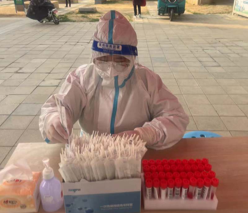 ? 9:00,所有人員就位,我也開始了我的“大白”體驗課,工作就是核對身份與二維碼一致,并進行拍照采樣。身穿防護服,站到崗位上,面前就是群眾,心中滿腔責(zé)任感,使命感。