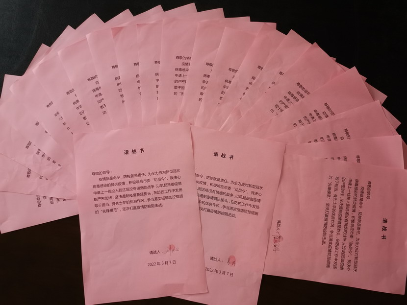 在黨員帶動下,群眾也紛紛行動起來?!斑€有我們,我們雖然不是黨員,但是我們也想為抗疫貢獻(xiàn)自己一份力量......”優(yōu)秀職工沈秀成、邱榮濱、韓永剛、占恒春如此說道?!拔覜Q心申請上一線投入到這場沒有硝煙的戰(zhàn)爭,以筑起抵御疫情的嚴(yán)密防線,聽從組織的統(tǒng)一指揮與安排,不計得失,無論生死,絕不退縮......”,42名志愿者在請戰(zhàn)書上簽上自己的名字并按下手印,紛紛表示,隨時準(zhǔn)備著黨中央的召喚,祖國的召喚,一聲令下,立即奔赴抗戰(zhàn)一線。
