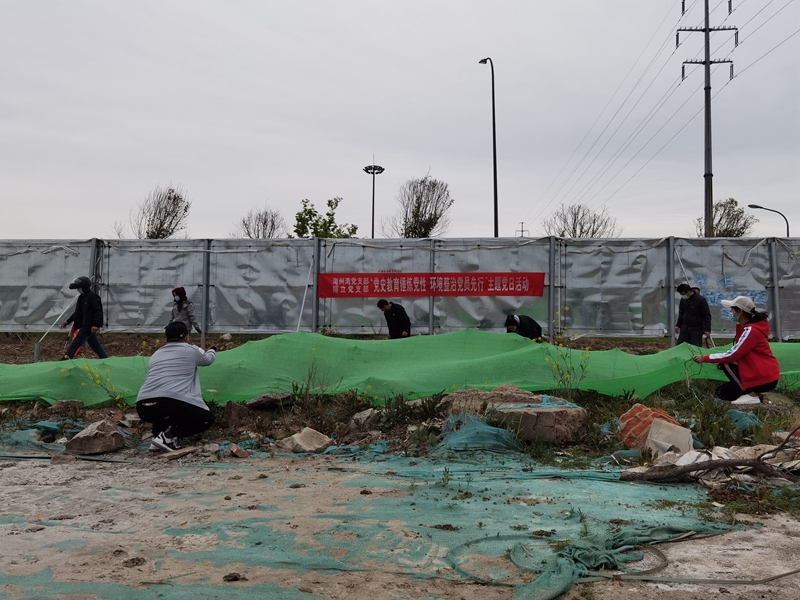 4月20日,為創(chuàng)造干凈衛(wèi)生的發(fā)展環(huán)境,豐富黨史學(xué)習(xí)教育形式,翔立分公司黨支部、海州灣公司黨支部聯(lián)合開(kāi)展“黨史教育錘黨性環(huán)境整治我先行”主題黨日活動(dòng),將黨史學(xué)習(xí)和創(chuàng)衛(wèi)活動(dòng)有機(jī)結(jié)合起來(lái),組織黨員對(duì)公司的車(chē)站小灘進(jìn)行環(huán)境整治,為裸露在外的土地進(jìn)行防塵網(wǎng)鋪設(shè)?,F(xiàn)場(chǎng)風(fēng)沙彌漫,塵土飛揚(yáng),經(jīng)過(guò)兩個(gè)小時(shí)的努力,鋪設(shè)的防塵網(wǎng)有效防止了因大風(fēng)天氣造成的二次揚(yáng)塵。質(zhì)勝于華,行勝于言,學(xué)史力行是明理、增信、崇德的落腳點(diǎn),是開(kāi)展黨史學(xué)習(xí)教育的關(guān)鍵環(huán)節(jié)。