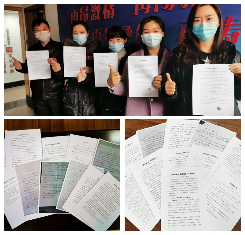 ? ? ??新的目標(biāo)、新的任務(wù)、新的征程,投資公司廣大干部職工通過遞交“決勝2020,我要這么干”決心書立決心,傳信心。圍繞當(dāng)前的目標(biāo)任務(wù)自我加壓,主動擔(dān)責(zé),切實做到防疫不松懈,工作不斷線。積極投身于“戰(zhàn)疫情、爭貢獻(xiàn),誓奪首季開門紅”勞動競賽中,以實際行動奪取“開門紅”,決勝“全年紅”。