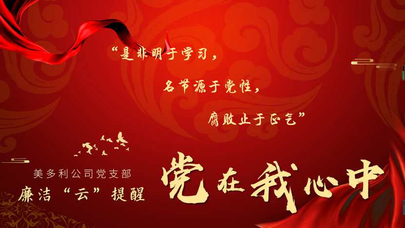 “是非明于學(xué)習(xí),名節(jié)源于黨性,腐敗止于正氣”,“撐起自律的綠傘,秉公道執(zhí)仁政,守得四季常青,為廉政保駕;豎起正義的風(fēng)帆,劈歪風(fēng)斬邪浪,迎來海闊天空,為廉潔護(hù)航。”黨的一百零一周年生日來臨之際,美多利公司全體黨員收到支部發(fā)送的廉潔提醒短信。