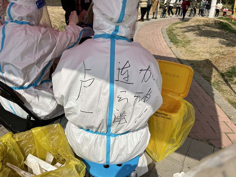 9:00 ?所有人員就位,我也開始了我的“大白”體驗課,工作就是核對身份證信息與二維碼一致,進行拍照采樣。身穿防護服,站到崗位上,面前就是群眾,心中滿腔責(zé)任感,使命感。