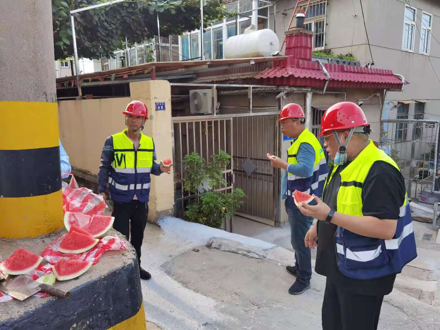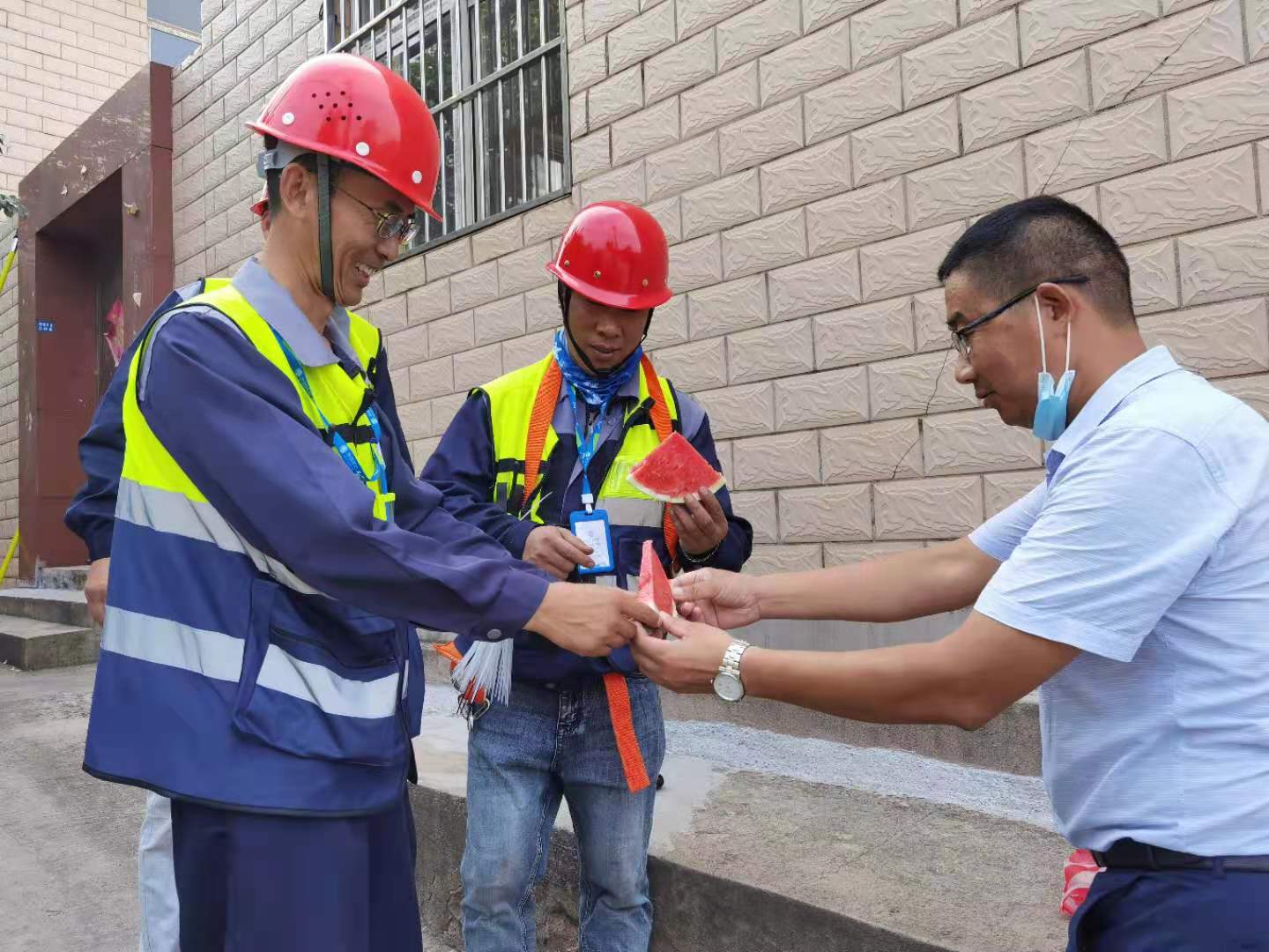 8月19日下午,翔立分公司工會(huì)為奮戰(zhàn)在移動(dòng)線(xiàn)纜整理第一線(xiàn)的職工送去西瓜,為他們帶來(lái)組織的關(guān)懷,在炎炎夏日送上絲絲涼意。為完成今年下達(dá)的目標(biāo)經(jīng)營(yíng)任務(wù),通信各小分隊(duì)的成員不懼高溫“烤驗(yàn)”,全力以赴堅(jiān)守在工作第一線(xiàn)。路邊瓜香彌漫,讓這個(gè)夏天不再炎熱。