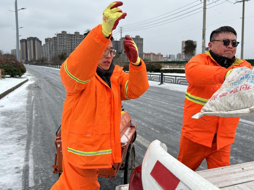 本次掃雪除冰共配備了3輛清掃車、2輛鏟車、1輛撒布機以及20余噸融雪劑,20余把推雪鏟、鐵鍬等清雪工具,采取“邊下邊除、邊除邊清、邊清邊運”的方式,根據(jù)道路積雪厚度和結(jié)冰情況,通過撒布融雪劑、除雪鏟推雪、人工配合等多措并舉,有效清理區(qū)內(nèi)主干道積雪,做到“即下即掃、雪停路清”,保障群眾出行安全。此外,針對紅綠燈路口、馬路轉(zhuǎn)彎處、陡坡、橋面以及非機動車道等重要節(jié)點,環(huán)衛(wèi)分公司又出動了100余名工作人員點對點人工撒布融雪劑,共保障面積300余萬平方米。