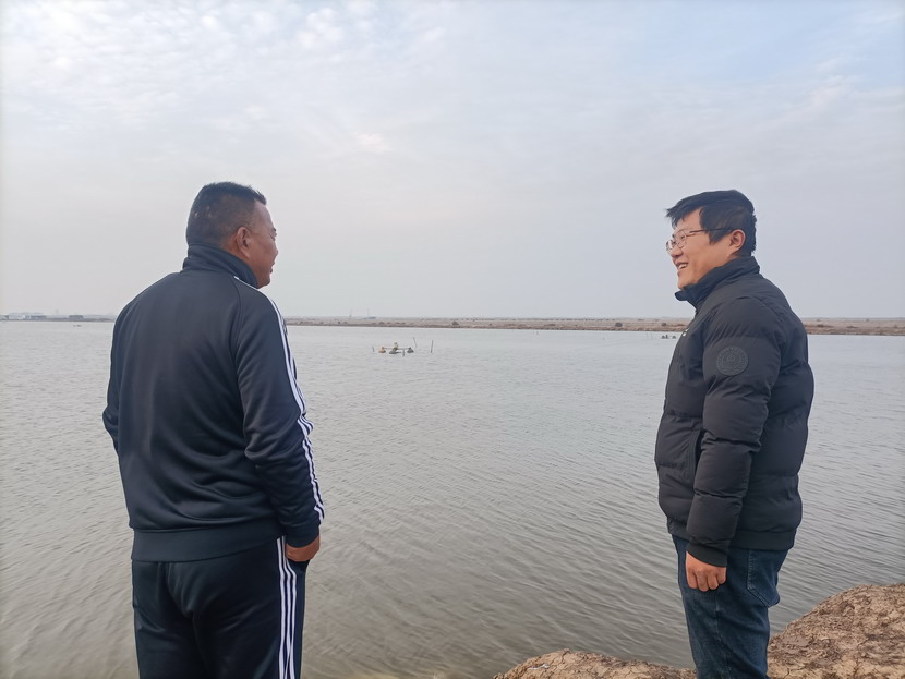 “劉老板你魚塘的水能控制在20天不排嗎!為使你們排水更順暢,我們要對開泰河道進(jìn)行清淤施工”。“ 王老板,你魚塘能在20天后起捕嗎”。這是11月14日養(yǎng)殖分公司李朕在塘頭與養(yǎng)殖戶就開塔河施工控制排水時(shí)間進(jìn)行的現(xiàn)場協(xié)調(diào) 。
