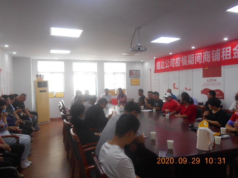 臨達公司黨支部堅決和黨中央保持一致,堅決擁護黨中央的決定,認真學習了省、市以及集團公司等減免疫情期間房租的相關文件精神,仔細研究、反復討論,經(jīng)上報臺北投資公司、集團公司兩級黨委批準,9月29日下午,減免光伸建材市場、德蘭建材市場、金三角市場、原公司院內倉庫、院外大棚、猴嘴山洞共48家商戶3個月租金,計52萬余元,減免金額達全年租金收入四分之一。