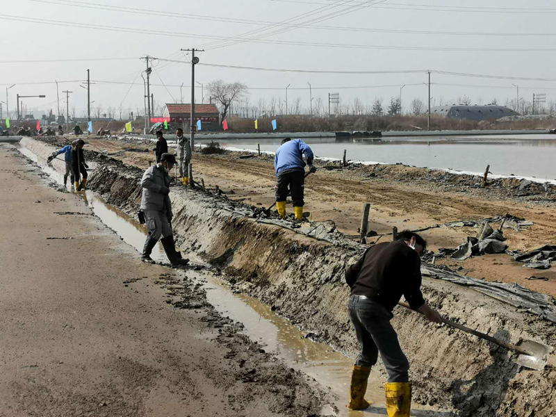 疫情攔不住奮進(jìn)者們,大浦全體員工投入了一場又一次的緊張繁忙的原鹽生產(chǎn)中。他們克服疫情影響充分利用初春的間隙時(shí)間,對塑布拉放、修補(bǔ)、灘地整修、鹵水收儲進(jìn)行及時(shí)有效的修復(fù)與儲存,為確保完成原鹽生產(chǎn)計(jì)劃奠定堅(jiān)實(shí)的基礎(chǔ)。