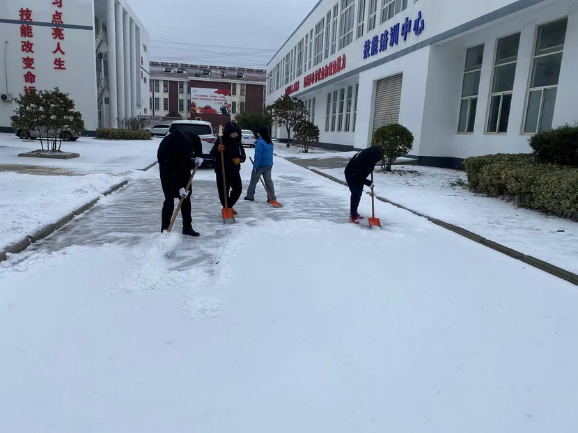 ? ? 男同事拿起鐵锨,女同事則緊隨其后,不甘示弱。大家熱情高漲,鏟雪、推雪、掃雪,干得熱火朝天。鐵鍬與地面的摩擦聲、掃帚的沙沙聲交織成一曲歡快的掃雪歌。在這寒冬之中,他們用汗水和熱情書(shū)寫著責(zé)任與擔(dān)當(dāng)。經(jīng)過(guò)大家共同努力,道路很快就暢通了,雪也被清除得干干凈凈。