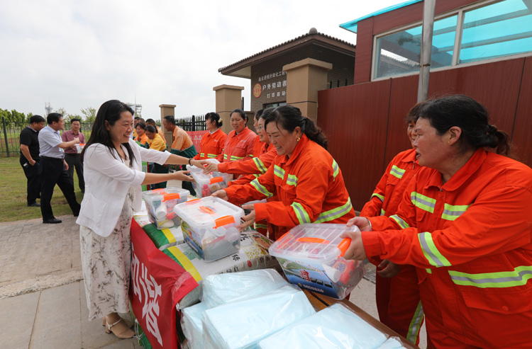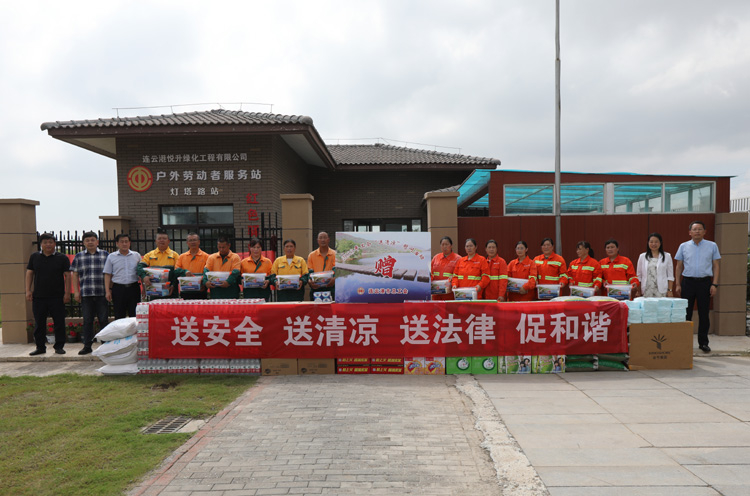????? 8月4日上午,市總工會副主席王悅到連云港綠化工程公司基層班組開展“送安全、送清涼、送法律”活動,走訪慰問堅守在高溫作業(yè)現(xiàn)場的市政養(yǎng)護(hù)職工,在送去防暑藥品、涼茶、礦泉水、綠豆、白糖、毛巾等防暑降溫物品的同時,為他們送去絲絲涼意和誠摯的關(guān)懷。