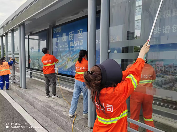 ? ? ? ?集中勞動(dòng)“有力彰顯”。學(xué)習(xí)活動(dòng)結(jié)束后,保潔、機(jī)關(guān)黨支部20多名黨員匯集新區(qū)核心區(qū)域徐圩大道,南京路等路段,開展黨員義務(wù)勞動(dòng)。活動(dòng)現(xiàn)場(chǎng),大家分工明確,相互配合,無(wú)懼高溫天氣,上下?lián)]動(dòng)雙臂,沖洗站臺(tái)玻璃和清理廣告標(biāo)語(yǔ),經(jīng)過(guò)兩個(gè)多小時(shí)持續(xù)奮戰(zhàn),徒手清洗站臺(tái)20多個(gè),座椅40多個(gè)。(楊波)