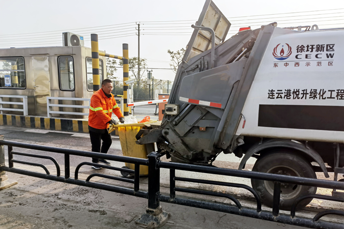 徐圩新區(qū)地域面積較大,廠區(qū)單位分布分散,形成集中清運點之間的跨度大、距離遠(yuǎn),從最東端的虹洋港口到最西端242省道邊的人文園,兩點相距就有15公里之多,面廣量大。為及時高效完成垃圾清運工作,羅海軍每天凌晨4點他對作業(yè)車輛進(jìn)行仔細(xì)檢查,隨后召開班前會議,他倡議全班工作人員:“吃在車上,干在路上。”爭分奪秒,確保工作完成更到位、更扎實。
