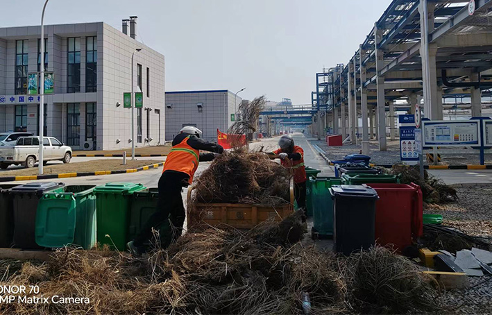 為營造石化園區(qū)內(nèi)部優(yōu)美整潔靚麗環(huán)境,保潔分公司聞令而動,第一時間趕赴中化倉儲公司院內(nèi),高質(zhì)高效完成突擊清理任務(wù)而努力奮戰(zhàn)。