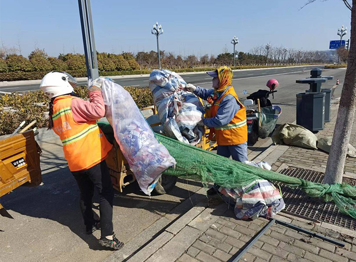 保潔道路有力度。此次大保障期間,該分公司百余名一線保潔員工,9位班長帶動(dòng)下,無視春光照曬,人工揮動(dòng)掃把清掃核心區(qū)域輔道1000多米長,突擊清理河道岸邊各種丟棄垃圾500多包,清理園區(qū)卡口處車輛拋灑石子30余車,道路現(xiàn)場(chǎng)身穿橙色服裝保潔員工,來回不停地徒手清撿園區(qū)道路兩側(cè)各類白色垃圾100多包。