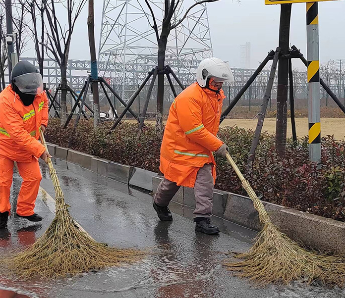 冬雨綿綿,持續(xù)低溫。1月17日上午,保潔分公司全員上下無懼冬雨低溫天氣,堅守崗位,用掃帚譜寫著一曲雨中清掃的篇章,一道道橘黃色身影成為了雨中最靚麗的風(fēng)景。