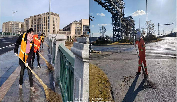 人工保潔“無(wú)所畏懼”。該分公司9個(gè)班組100多名保潔人員每天在班長(zhǎng)的帶動(dòng)下,無(wú)懼徐圩海風(fēng)吹透身體,盡管手凍僵了,仍然揮動(dòng)手中掃把清掃園區(qū)輔道落葉、泥土1500多米長(zhǎng),清倒各種果皮箱300多個(gè),轉(zhuǎn)運(yùn)各類生活垃圾500多包,清洗站臺(tái)20多個(gè),清除道路坑塘積水30多處,深冬時(shí)節(jié)道路人工保潔質(zhì)效再“升溫”。