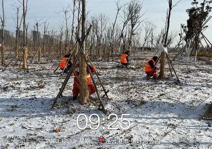 為確保園林樹木安全越冬,有效鞏固園林綠化成果,自11月中旬起,綠化分公司按照“早動員、早部署、早實施”的原則,在管養(yǎng)區(qū)域開展了冬季綠地管護提質(zhì)專項活動,通過澆灌凍水、樹木修剪、根頸培土、包裹樹干等多項舉措有力保證了苗木安全過冬。
