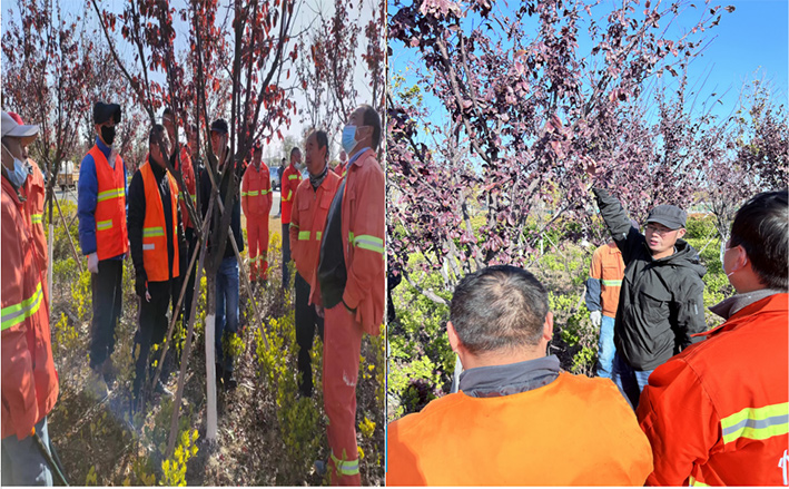 在培訓(xùn)現(xiàn)場,孫工主要圍繞喬木修剪標(biāo)準(zhǔn)、病蟲害枝條處理、修剪工具規(guī)范使用、以及修剪完畢對喬木如何處理等注意事項(xiàng)等內(nèi)容進(jìn)行學(xué)習(xí)培訓(xùn)。參訓(xùn)人員通過理論和實(shí)踐相結(jié)合的方式,即學(xué)即實(shí)踐,更快更直觀地掌握了綠植修剪技術(shù)。大家紛紛表示,要珍惜學(xué)習(xí)的機(jī)會,結(jié)合公司綠化管養(yǎng)實(shí)際,把所學(xué)技術(shù)運(yùn)用到綠化養(yǎng)護(hù)上,營造徐圩優(yōu)美景觀打?qū)嵒A(chǔ)。(潘浩)