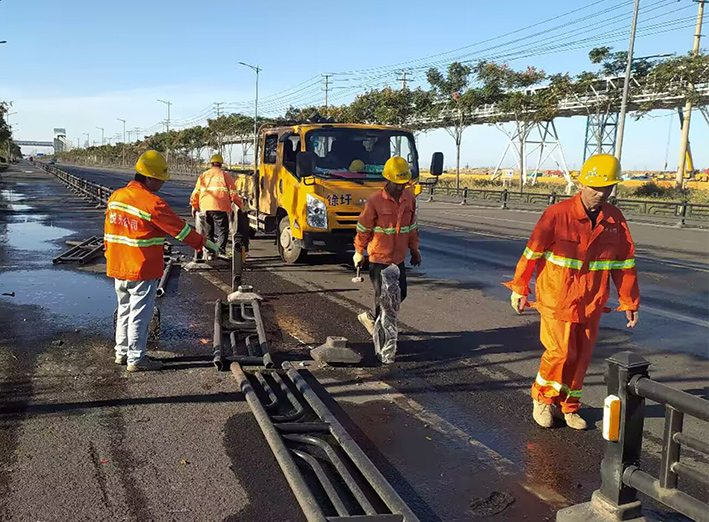 自10月23日以來(lái),道路養(yǎng)護(hù)人員的腳步?jīng)]有停歇,依舊是早出晚歸,默默堅(jiān)守在崗位上。為更快解決道路養(yǎng)護(hù)過(guò)程中存在的薄弱環(huán)節(jié),市政分公司把每條道路細(xì)化到具體的責(zé)任組,實(shí)行定人、定路段、定標(biāo)準(zhǔn),全力以赴做好抓差補(bǔ)缺,尤其要做好綠化帶里外旮旯等處窨井巡查與維護(hù)工作,不留死角。截至目前,已完成核心區(qū)、石化區(qū)等路段瀝青路面修補(bǔ)約90平方米,雨水井篦維修更換33套,更換窨井蓋14個(gè)、提升窨井3座,補(bǔ)充隔離欄示廓反光標(biāo)146個(gè),應(yīng)急搶修受損道路隔離護(hù)欄78米、調(diào)整、整平、扶正路牙石約126米。