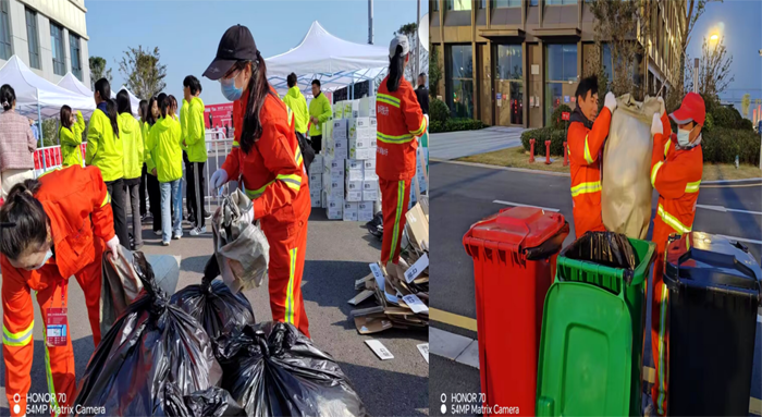 10月22日凌晨3時,保潔公司40余名保潔先鋒兵鋒六路安全序時趕赴賽事保障區(qū)域。道路現(xiàn)場,保潔衛(wèi)士無懼深秋徐圩海風(fēng)吹透身體,兩人一組,揮動手中掃把,徒手清掃各個活動區(qū)域積土1000多米長,撿拾海風(fēng)吹落各種垃圾100余包。比賽現(xiàn)場,保潔人員無視秋日暖陽照曬,及時有效清理運(yùn)動員丟棄飲料瓶300余包,清理打包各種餐盒2000多個,轉(zhuǎn)運(yùn)各種垃圾200多車。大家齊心合力的工作精神與賽事活動融入一體。