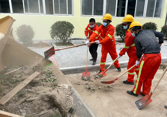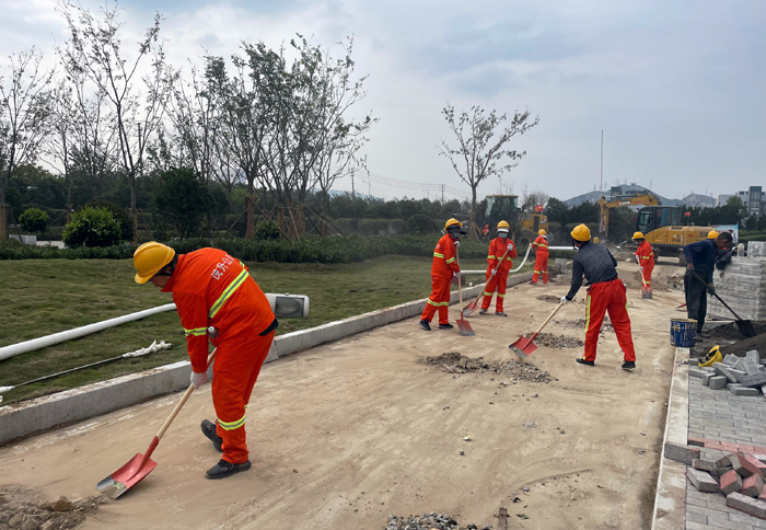 面對(duì)繁重工作量,為了切實(shí)加快施工進(jìn)度,悅升公司黨員干部主動(dòng)請(qǐng)纓要求到一線與大家共同奮戰(zhàn)。“不要急,要嚴(yán)格施工流程,確保工程質(zhì)量達(dá)標(biāo)……”該公司負(fù)責(zé)人馮如師邊說邊邊將工程垃圾裝運(yùn)到車上。截止當(dāng)前,該公司班子成員帶領(lǐng)機(jī)關(guān)工作人員堅(jiān)守陣地,持續(xù)工作了17日。為確保高質(zhì)高效完成各項(xiàng)工程任務(wù),大家“白加黑”晝夜不間斷的全力奮戰(zhàn),已完成瀝青路面攤鋪1.7萬m2、園路鋪設(shè)3000m2、路緣石安裝1660m、樹池圍牙砌筑1136m、更換下水道篦子130塊……各項(xiàng)工程任務(wù)完成接近尾聲。
