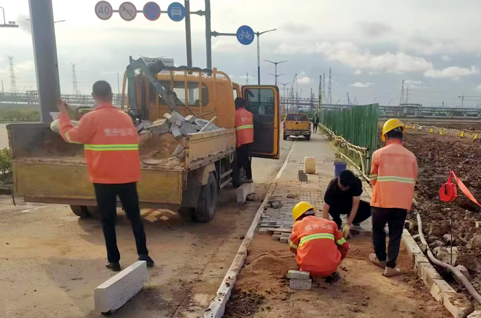 走進(jìn)新區(qū)石化十路一處施工現(xiàn)場(chǎng),“市政尖兵們”正井然有序地對(duì)因施工車(chē)輛碾壓造成人行步道地磚破損處進(jìn)行修復(fù)。人工拆除原受損人行道地磚,對(duì)缺失路牙石進(jìn)行補(bǔ)缺并壓實(shí)整平基礎(chǔ)、定位放線、更換面包磚和盲道磚,經(jīng)過(guò)2個(gè)多小時(shí)緊張施工,原坑坑洼洼的路面,取而代之是敞亮平整。多日來(lái),默默無(wú)聞的市政“尖兵”們用勤勞的雙手加速施工進(jìn)程,用實(shí)干詮釋徐圩悅升市政人的新風(fēng)采。目前,已完成徐圩大道、云河路等10條主次干道兩側(cè)人行道集中巡檢修補(bǔ)工作,共整治32處,更換面包磚約96平方米、路緣石33米、盲道地磚11平方米。