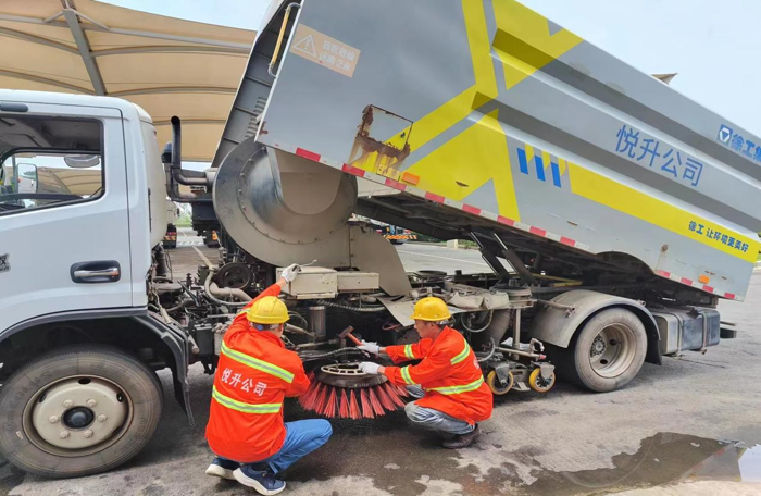 ? ? ? ?連日來,持續(xù)高溫,酷暑難耐。悅升公司車輛維修班組始終堅(jiān)守崗位,他們用汗水確保公司所有作業(yè)車輛、設(shè)備設(shè)施正常運(yùn)行,盡全力保障環(huán)衛(wèi)生產(chǎn)車輛的出勤率,為公司安全生產(chǎn)做好后勤保障工作。