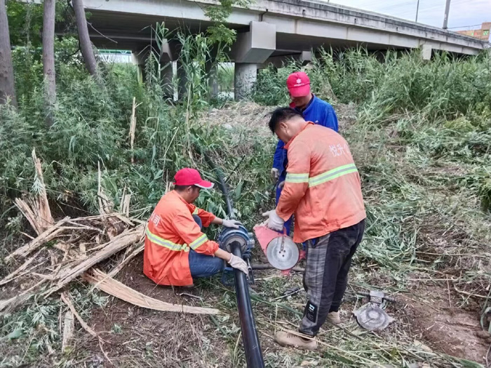 ? ? ? ?供水組接到任務(wù)后,積極采取措施,切實(shí)解決用水問(wèn)題??紤]到原管網(wǎng)承壓脆弱,為避免造成水資源的浪費(fèi),針對(duì)性對(duì)加水點(diǎn)上游老化管道進(jìn)行更換改造。在施工過(guò)程中,由于安裝管道在野外作業(yè),施工環(huán)境較差,隊(duì)員要在一人高蘆柴地里來(lái)回穿梭,進(jìn)行管道布設(shè)、管道熔接,加上室外溫度達(dá)到35度以上,灼熱感、蚊蟲(chóng)叮咬讓隊(duì)員們相當(dāng)難受,隊(duì)員季小東、劉佃寶脖子已經(jīng)出現(xiàn)紅腫,率先領(lǐng)到“紅包”。供水班組全體人員埋頭苦干,毫無(wú)怨言,克服天氣及環(huán)境不利因素影響,搶時(shí)間、抓進(jìn)度,經(jīng)過(guò)3日全力奮戰(zhàn),順利完成此次管道更新改造任務(wù)。此次安裝作業(yè),已對(duì)326米老舊管道進(jìn)行了更換,加裝直徑100閘閥2個(gè)、直徑100水表1只、100*65型地上式消火栓1個(gè)。(楊維軍)